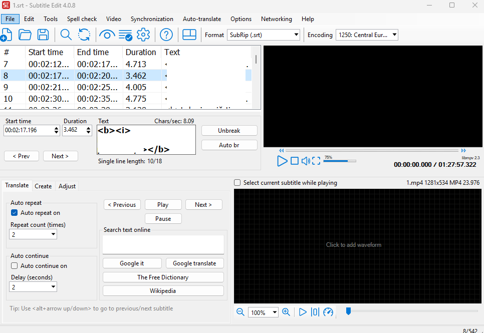 Furthermore, when you save as - or export to - other formats, font size, -color, background, spacing and more, can be edited/set as per what features are supported by your target format. Subtitle formats are text- or picture based. Srt is the most simple of text-based subs. It's a "quick & dirty" format with just timestamps and text.