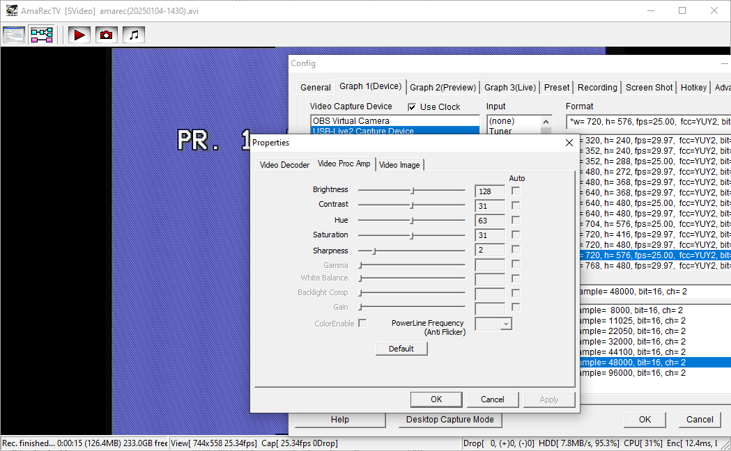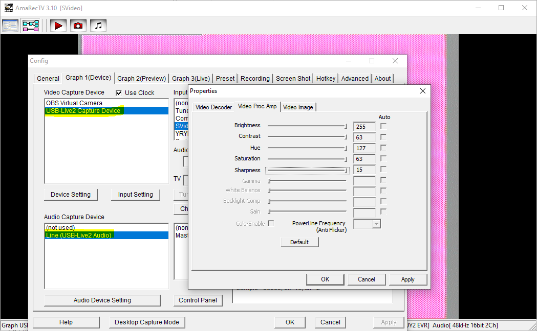 Does this indicate something I should consider? Could this possibly point to an issue with the Hauppauge USB-Live2 unit or wrong setup?