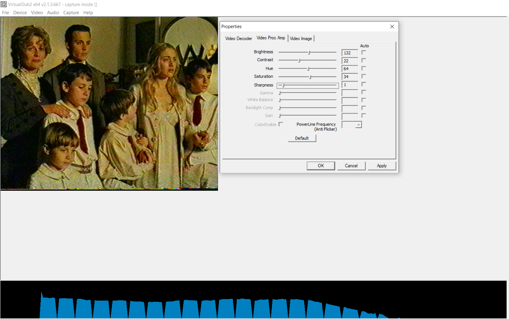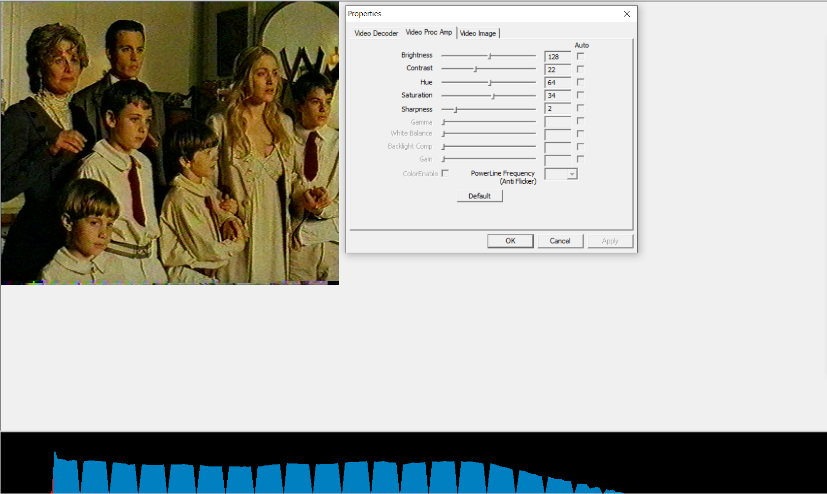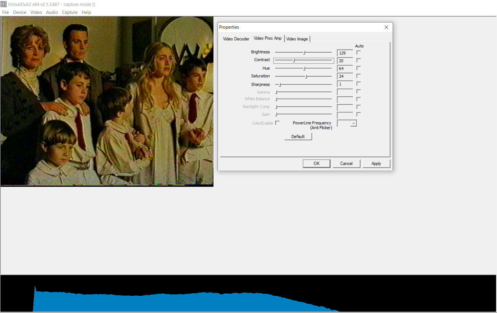 P.S. I am wondering where the hard clipping of the darks originates from. Brightness or contrast procamp tweaks seems not to mitigate it. It is still there even after cropping off any borders. Maybe it's baked into the source or comes from the VCR or from the capture device (?). Just speculating.....