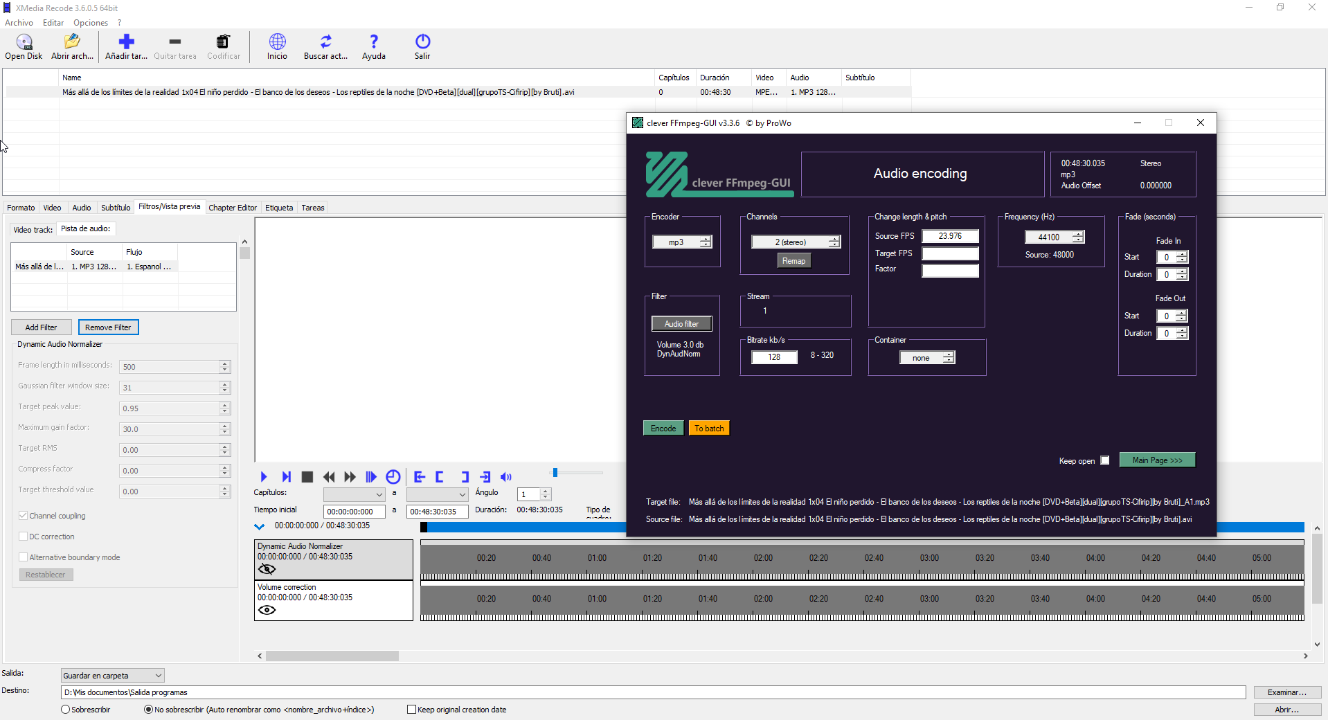 clever FFmpeg-GUI makes a mp3: Xmedia Recode create a video file (mp4) with the new audio with the target db. -