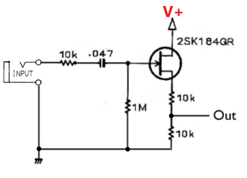 I want to do what you see on the first image. A buffer that reduces the volume on the output with 50%. I need this as an 'active' pad before my guitar pedals in the pedal board. My guitar signal is too strong for them and they distort. So I need this equipment as 1st in the chain after the guitar. -