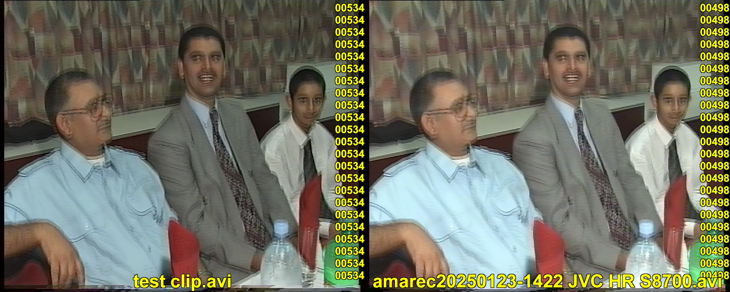 2nd screenhot: There seems to be a chroma offset (left ~2 pixels). You may consider addressing this in post, or see what changes when you disable any pre-processing by the VCR.Last edited by Sharc; 23rd Jan 2025 at 05:16. Reason: Chroma offset added