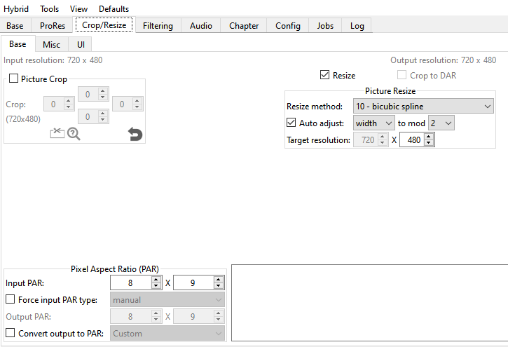 QUESTION: If working with an SD video captured at 720x480, are these the correct settings to use in Hybrid to produce a new video file that is most likely to display properly without widening the image so everyone looks large or narrowing the image so everyone looks skinny?
