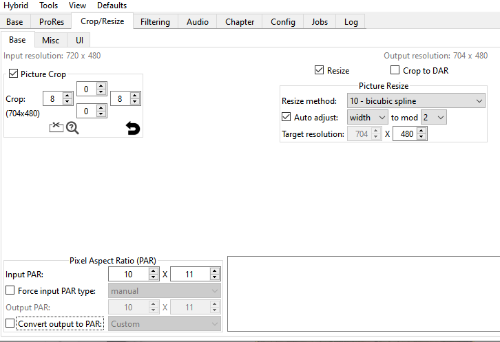 "SD video captured at 720x480" so likely some SD NTSC content,...QUESTION: If working with an SD video captured at 720x480, are these the correct settings to use in Hybrid to produce a new video file that is most likely to display properly without widening the image so everyone looks large or narrowing the image so everyone looks skinny?