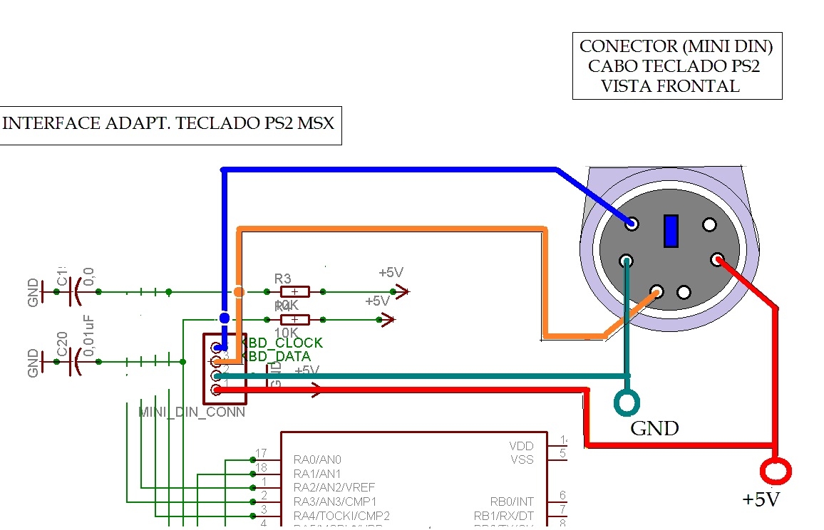 I have this electrical diagram for the PS2 keyboard. I'll base myself on that.