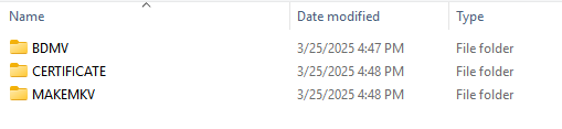 movies without any errors. I try to play them with VLVMedia Player but am having problems getting them to open. When I go to open a file usually I would just double click on the movie I wanted to play and it would open and start to play. Now when I double click on my newly downloaded blu ray movie I get 3 folders instead of the movie just opening and playing. See attachment.