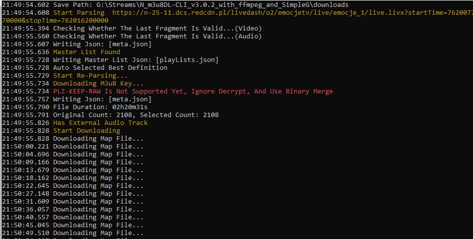 Code:N_m3u8DL-RE "https://n-25-11.dcs.redcdn.pl/livedash/o2/emocjetv/live/emocje_1/live.livx?startTime=762007770000&stopTime=762016200000" -M format=mkv --key ....