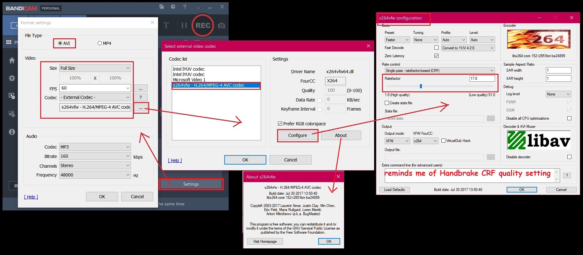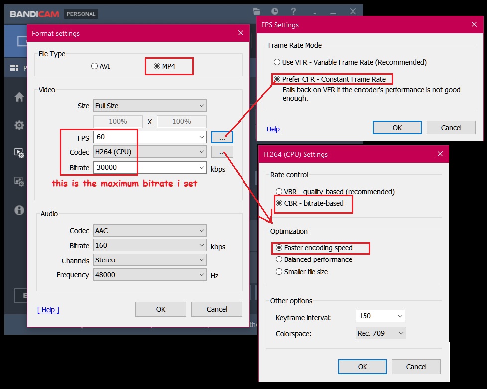 Hi everyone, i use Bandicam sometimes for doing screen captures, and i generally use the following settings, which seems to give me pretty decent results.