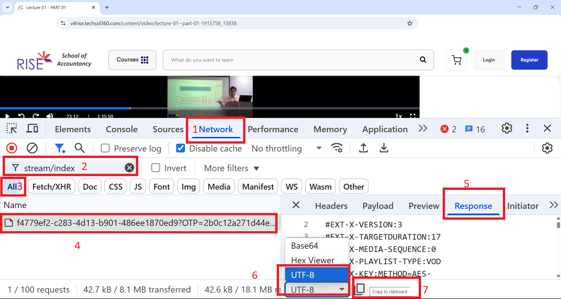 thanks for your response. I watched a bunch of tutorial videos. I am able to find hex "key" but unable to find the stream/index url which needs to be copied. Probably this will be the last step and i will be able to download this.