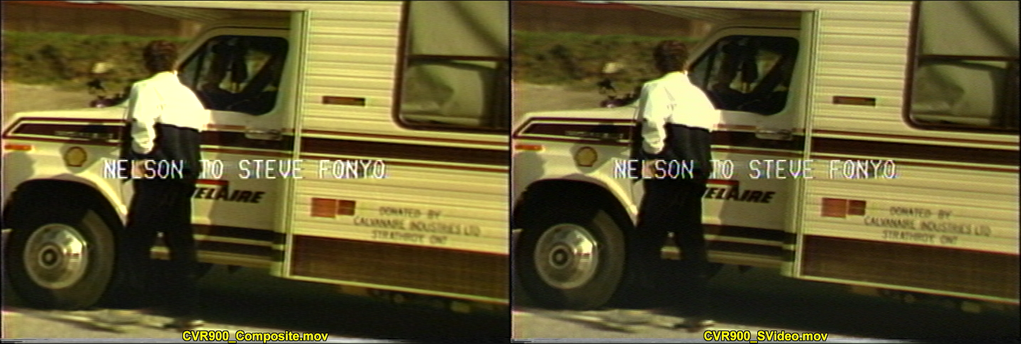 The CVR900 interested me in particular because I believe it has line-TBC-like effects (which Umatic otherwise lacks). If the CVR900 clips hot signals at the input, that makes it a less "all in one device" than I was hoping, or I may have some setting for automatic gain control set incorrectly. Automatic color control produces strange artifacts occasionally at least with U-Matic, so that I'll be leaving off.