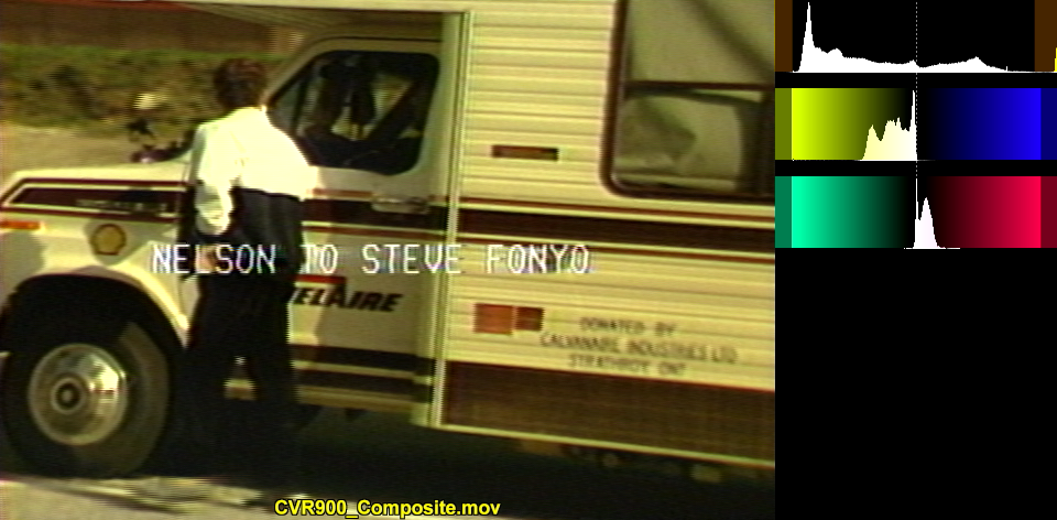 The CVR900 interested me in particular because I believe it has line-TBC-like effects (which Umatic otherwise lacks). If the CVR900 clips hot signals at the input, that makes it a less "all in one device" than I was hoping, or I may have some setting for automatic gain control set incorrectly. Automatic color control produces strange artifacts occasionally at least with U-Matic, so that I'll be leaving off.