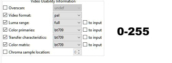 I am trying to convert 16-235 and 0-255 avi test streams to mp4 with XMedia Recode and Hybrid, but I don't get the exact RGB values for black and white. I use the tool CaptCouleur 2.1 to measure the luminance on VLC Player.