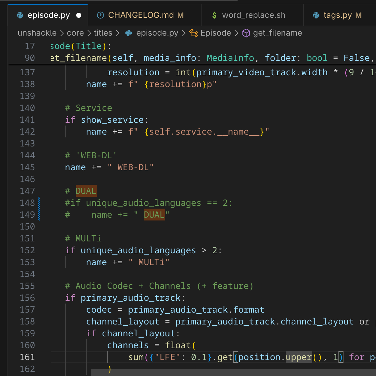 In unshackle/unshackle/core/titles/episode.py find line 148/149 or thereabouts and comment them out.