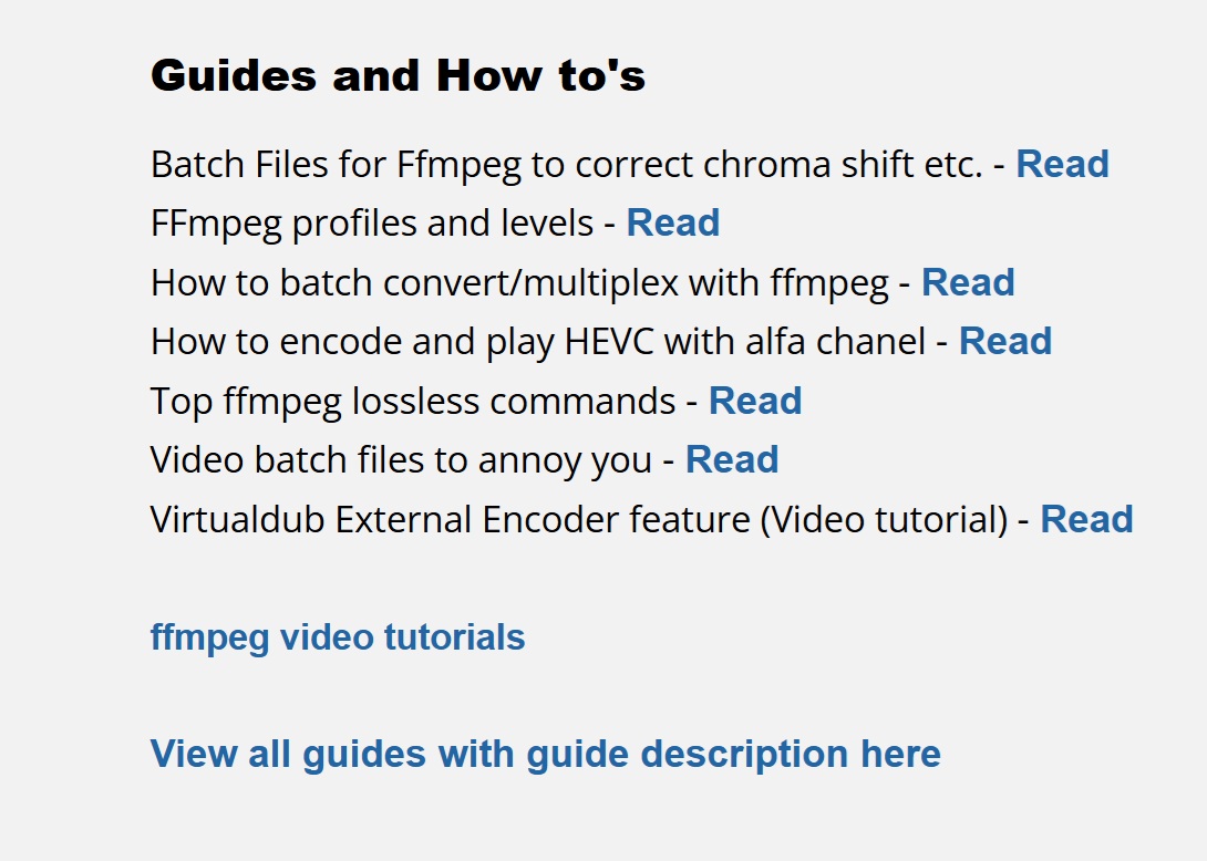 you have visit Clever FFmpeg GUI download site, just grab download and dont bother scroll down, there is Guides and How to's