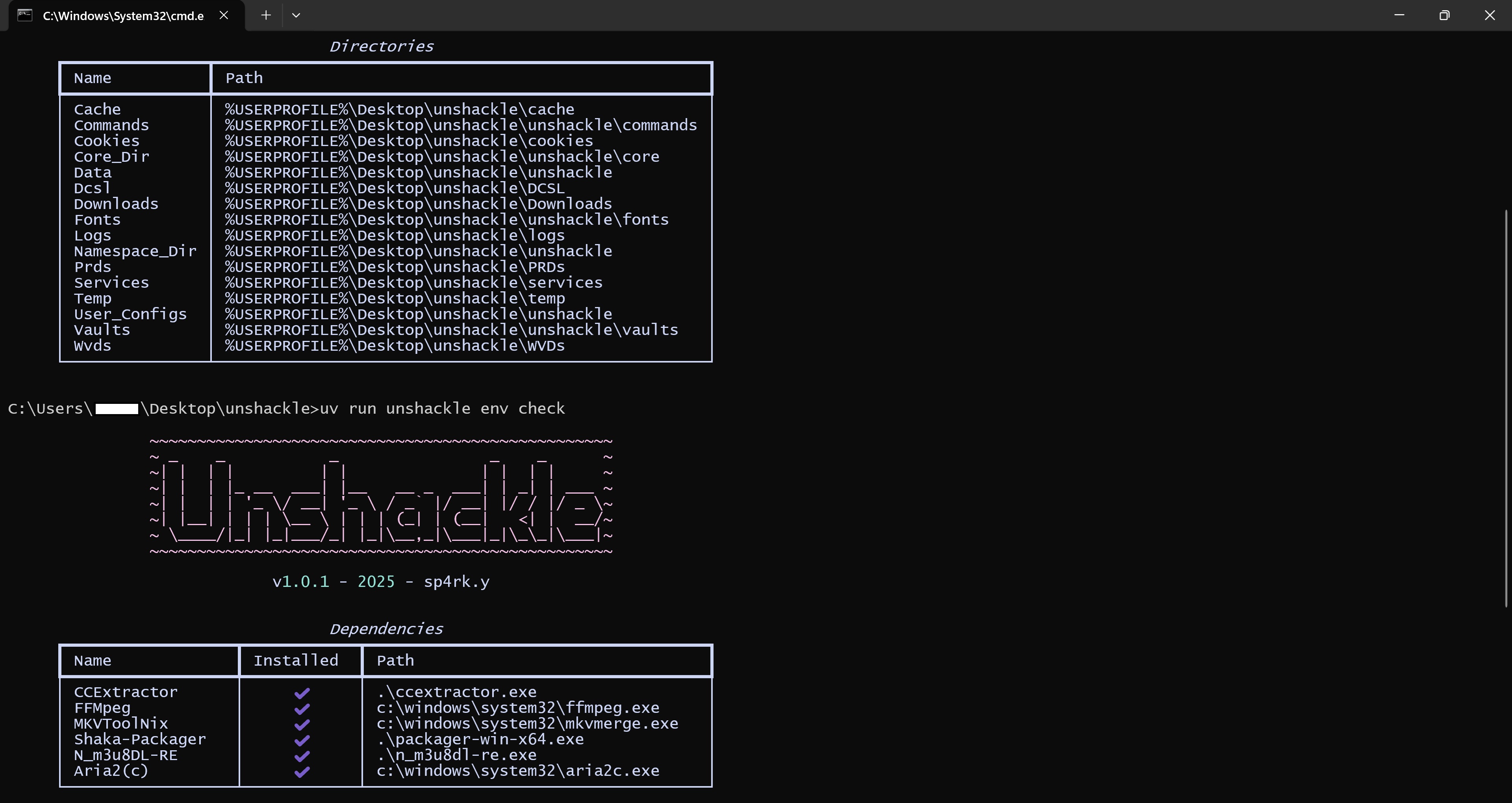As I mentioned in first post, the install went fine, added wvd etc and nothing suggested an issue, I just can't point it to a service folder again. The command uv run unshackle env check works out fine, that's all ticked off.