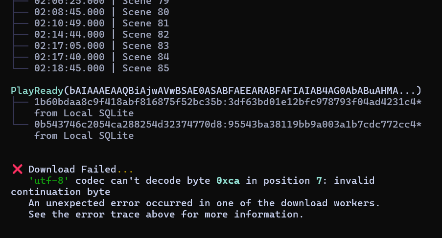 Code:C:\unshackle>uv run unshackle dl -q 540 -w S02E05 CBS https://www.cbs.com/shows/matlock/ ▄ ▄▌ ▐ ▄ .▄▄ · ▄ .▄ ▄▄▄· ▄▄· ▄ ▄ ▄▄▌ ▄▄▄ . █▪██▌█▌▐█▐█ ▀. ██▪▐█▐█ ▀█ ▐█ ▌▪█▌▄▌▪██ ▀▄.▀· █▌▐█▌▐█▐▐▌▄▀▀▀█▄██▀▐█▄█▀▀█ ██ ▄▄▐▀▀▄·██▪ ▐▀▀▪▄ ▐█▄█▌██▐█▌▐█▄▪▐███▌▐▀▐█ ▪▐▌▐███▌▐█.█▌▐█▌▐▌▐█▄▄▌ ▀▀▀ ▀▀ █▪ ▀▀▀▀ ▀▀▀ · ▀ ▀ ·▀▀▀ ·▀ ▀.▀▀▀ ▀▀▀ v 4.0.0 - © 2025-2026 - github.com/unshackle-dl/unshackle Service Config loaded Loaded 1/1 Vaults Loaded Widevine CDM: 4445 (L3) ─────────────────────────────── Service: CBS ─────────────────────────────── Service is not Geoblocked in your region ───────────────────────────── Series: Matlock ────────────────────────────── 2 seasons, S1(19), S2(11) ───────────────────────── Matlock S02E05 Mousetrap ───────────────────────── Cached 1 Key to 1/1 Vaults 1 Video └── [H.264, SDR] | en-US | 960x540 @ 1588 kb/s, 23.976 FPS ━━━━━━━━━━━━━━━━━━━━━━━━━━━━━━━━━━━━━━━━ 04:08 Downloaded 1 Audio └── [DD+] | en-US | 6.0 | 194 kb/s | United States ━━━━━━━━━━━━━━━━━━━━━━━━━━━━━━━━━━━━━━━━ 04:04 Downloaded 1 Subtitle └── [WVTT] | en-US | United States ━━━━━━━━━━━━━━━━━━━━━━━━━━━━━━━━━━━━━━━━ 02:07 Downloaded 2 Chapters ├── 00:00:00.000 └── 00:42:24.000 | Credits Widevine(AAAAWHBzc2gAAAAA7e+LqXnWSs6jyCfc1R0h7QAAADgIARIQ+C3qqEkHR...) └── f82deaa84907462b865295d8ba170054:5d9c9039e76b1be5bf8767065d1fb323* Track downloads finished in 4m8s Multiplexing... ━━━━━━━━━━━━━━━━━━━━━━━━━━━━━━━━━━━━━━━━ 00:02 🎉 Title downloaded in 4m12s! Processed all titles in 4m15s C:\unshackle>uv run unshackle dl -q 720-w S02E06-S02E11 CBS https://www.cbs.com/shows/matlock/ ▄ ▄▌ ▐ ▄ .▄▄ · ▄ .▄ ▄▄▄· ▄▄· ▄ ▄ ▄▄▌ ▄▄▄ . █▪██▌█▌▐█▐█ ▀. ██▪▐█▐█ ▀█ ▐█ ▌▪█▌▄▌▪██ ▀▄.▀· █▌▐█▌▐█▐▐▌▄▀▀▀█▄██▀▐█▄█▀▀█ ██ ▄▄▐▀▀▄·██▪ ▐▀▀▪▄ ▐█▄█▌██▐█▌▐█▄▪▐███▌▐▀▐█ ▪▐▌▐███▌▐█.█▌▐█▌▐▌▐█▄▄▌ ▀▀▀ ▀▀ █▪ ▀▀▀▀ ▀▀▀ · ▀ ▀ ·▀▀▀ ·▀ ▀.▀▀▀ ▀▀▀ v 4.0.0 - © 2025-2026 - github.com/unshackle-dl/unshackle Usage: unshackle dl [OPTIONS] COMMAND [ARGS]... Try 'unshackle dl -?' for help. Error: Invalid value for '-q' / '--quality': '720-w' is not a valid integer C:\unshackle>uv run unshackle dl -q 720 -w S02E06-S02E11 CBS https://www.cbs.com/shows/matlock/ ▄ ▄▌ ▐ ▄ .▄▄ · ▄ .▄ ▄▄▄· ▄▄· ▄ ▄ ▄▄▌ ▄▄▄ . █▪██▌█▌▐█▐█ ▀. ██▪▐█▐█ ▀█ ▐█ ▌▪█▌▄▌▪██ ▀▄.▀· █▌▐█▌▐█▐▐▌▄▀▀▀█▄██▀▐█▄█▀▀█ ██ ▄▄▐▀▀▄·██▪ ▐▀▀▪▄ ▐█▄█▌██▐█▌▐█▄▪▐███▌▐▀▐█ ▪▐▌▐███▌▐█.█▌▐█▌▐▌▐█▄▄▌ ▀▀▀ ▀▀ █▪ ▀▀▀▀ ▀▀▀ · ▀ ▀ ·▀▀▀ ·▀ ▀.▀▀▀ ▀▀▀ v 4.0.0 - © 2025-2026 - github.com/unshackle-dl/unshackle Service Config loaded Loaded 1/1 Vaults Loaded Widevine CDM: 4445 (L3) ─────────────────────────────── Service: CBS ─────────────────────────────── Service is not Geoblocked in your region ───────────────────────────── Series: Matlock ────────────────────────────── 2 seasons, S1(19), S2(11) ────────────────────── Matlock S02E06 Harm Reduction ─────────────────────── Cached 1 Key to 1/1 Vaults 1 Video └── [H.264, SDR] | en-US | 1280x720 @ 3490 kb/s, 23.976 FPS ━━━━━━━━━━━━━━━━━━━━━━━━━━━━━━━━━━━━━━━━ 08:20 Downloaded 1 Audio └── [DD+] | en-US | 6.0 | 194 kb/s | United States ━━━━━━━━━━━━━━━━━━━━━━━━━━━━━━━━━━━━━━━━ 08:12 Downloaded 1 Subtitle └── [WVTT] | en-US | United States ━━━━━━━━━━━━━━━━━━━━━━━━━━━━━━━━━━━━━━━━ 04:30 Downloaded 2 Chapters ├── 00:00:00.000 └── 00:41:45.000 | Credits Widevine(AAAAWHBzc2gAAAAA7e+LqXnWSs6jyCfc1R0h7QAAADgIARIQrtJd8D8WQ...) └── aed25df03f16413597180d1dd2b125d7:76c7089bdd1238f131cc060645cfdcc2* Track downloads finished in 8m20s Multiplexing... ━━━━━━━━━━━━━━━━━━━━━━━━━━━━━━━━━━━━━━━━ 00:03 🎉 Title downloaded in 8m25s! ────────────────────── Matlock S02E07 Prior Bad Acts ─