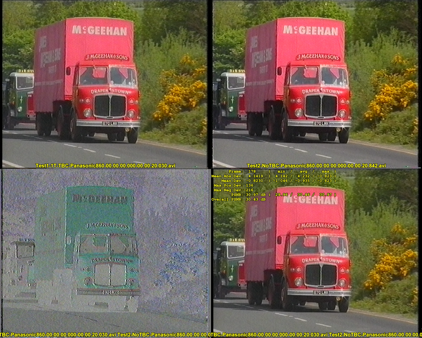 I've added a few samples from a test capture on my Panasonic NV-HS860 - one with the 1T-TBC in the loop, the other with no TBC, 860 directly to capture card. Any comments on any visual impact from having the 1T-TBC in the loop?