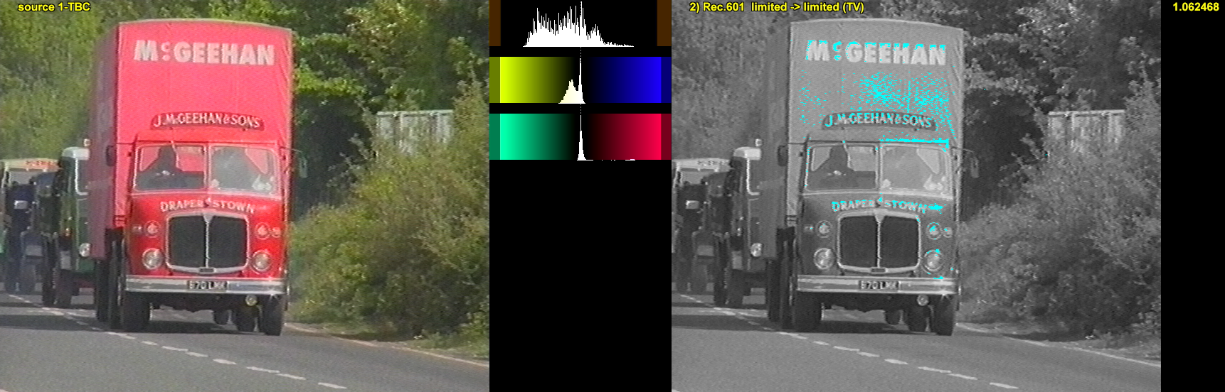 "1-TBC" has less out-of gamut RGB than "No TBC" with its clipped REDs (using the non-expanding ITU limited-limited TV matrix). Out-of-Gamut RGB pixels are show in Cyan on the right side.