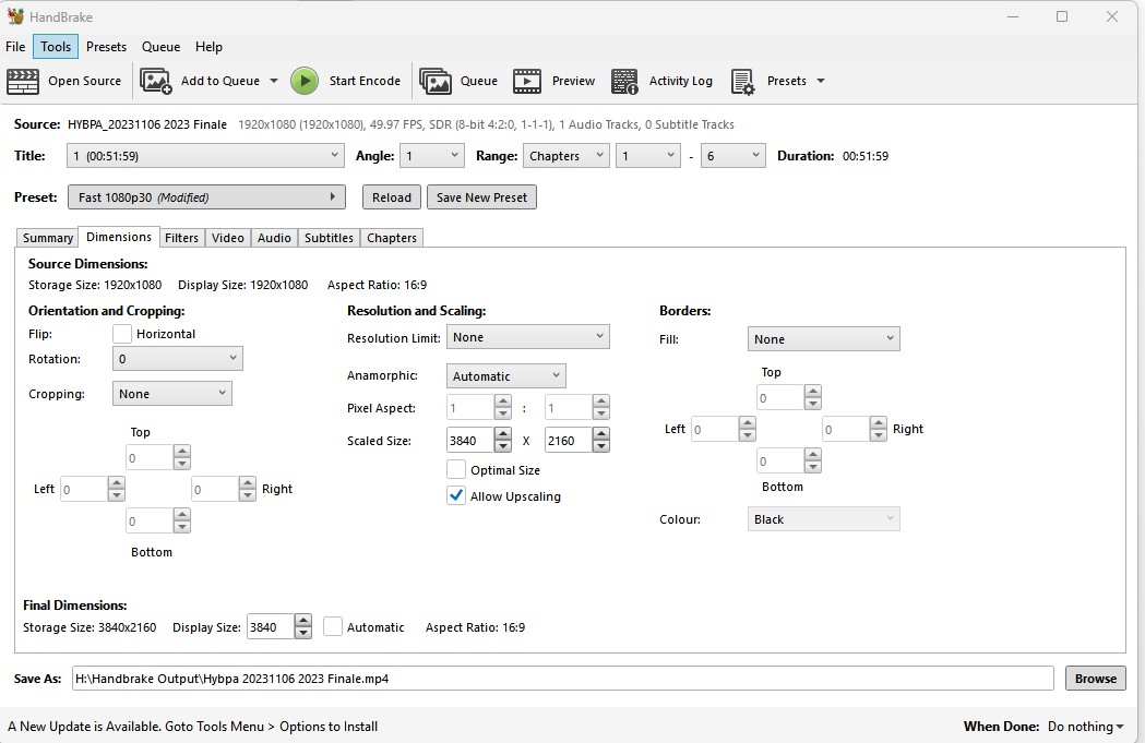 Right now I am going through using ffmpeg to upscale the 1080s to 4K, and from there I will plan on putting them to a usb thumb drive and then maybe circling around to see if I can create some disks from what has been done. Thanks so much for the suggestions and advice, usually_quiet and Alwyn!