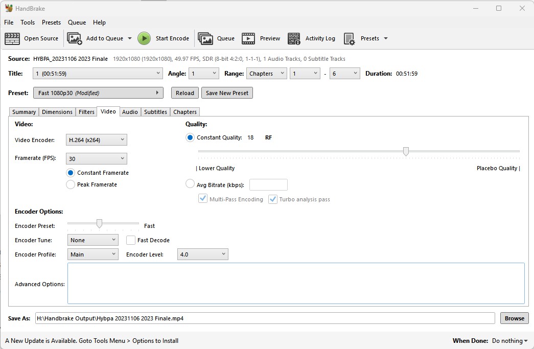 I've set the RF at 18, which is a reasonable quality level, but if you see lower quality, you can increase it by decreasing the RF.