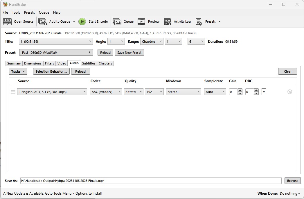 Now you're all set to export: set the export file name down the bottom, and then, up the top, hit Encode.