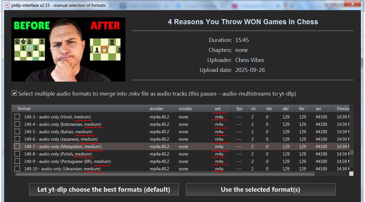 There should be m4a audio format of low and high quality, as it was in the previous version of ytdlp -