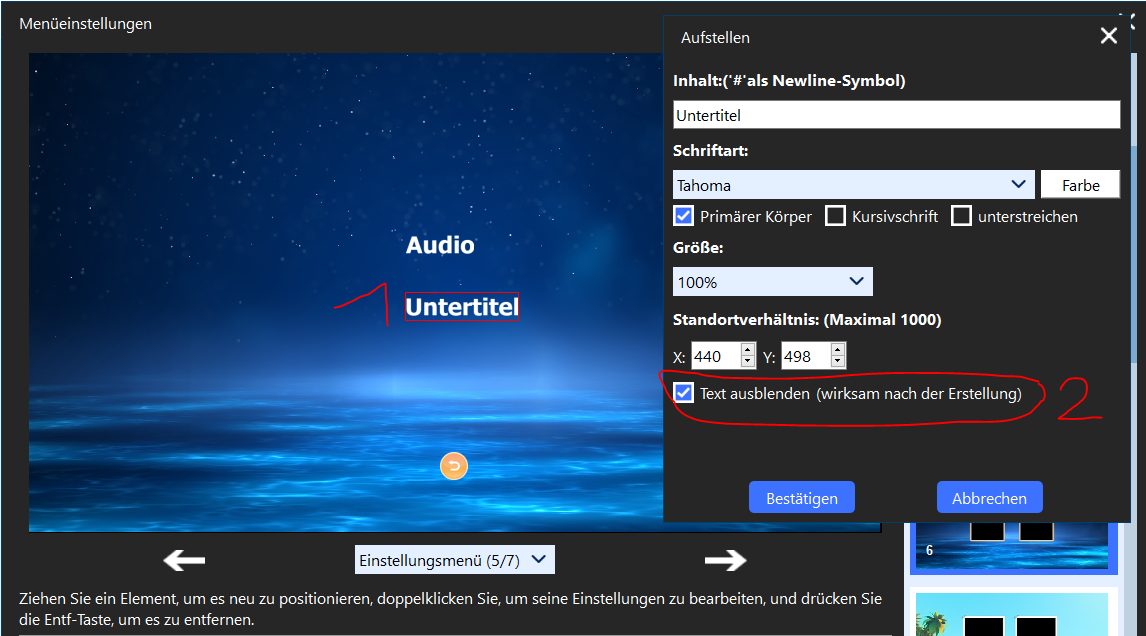Button to navigate in menu of DVD Architect Pro 5.2