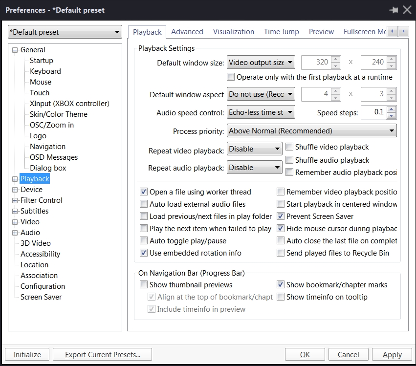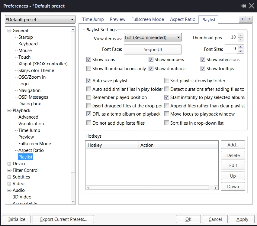 After these are disabled, opening the Playlist (or via shortcut) will start from the first file. -