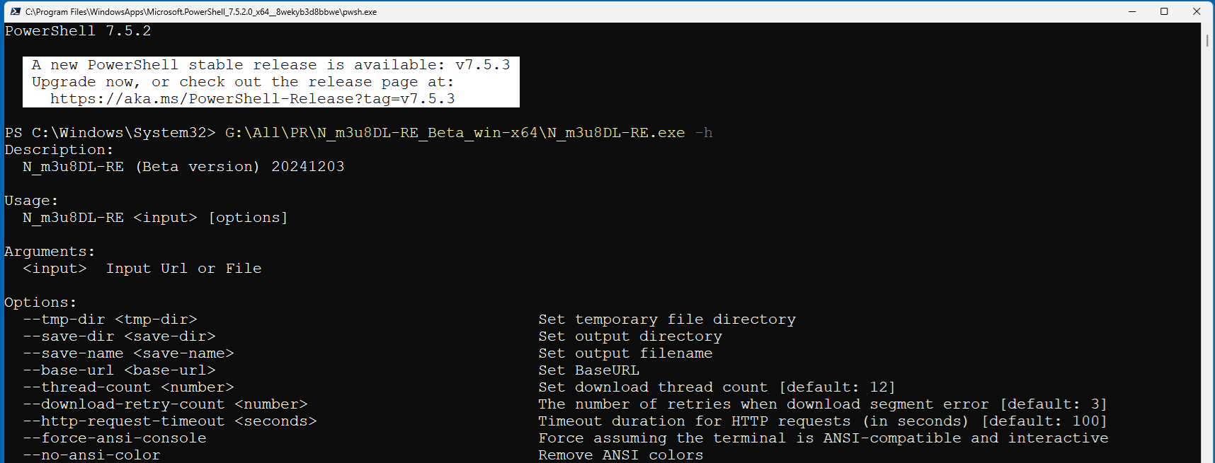 )Code:C:\Tools\N_m3u8DL-RE.exe