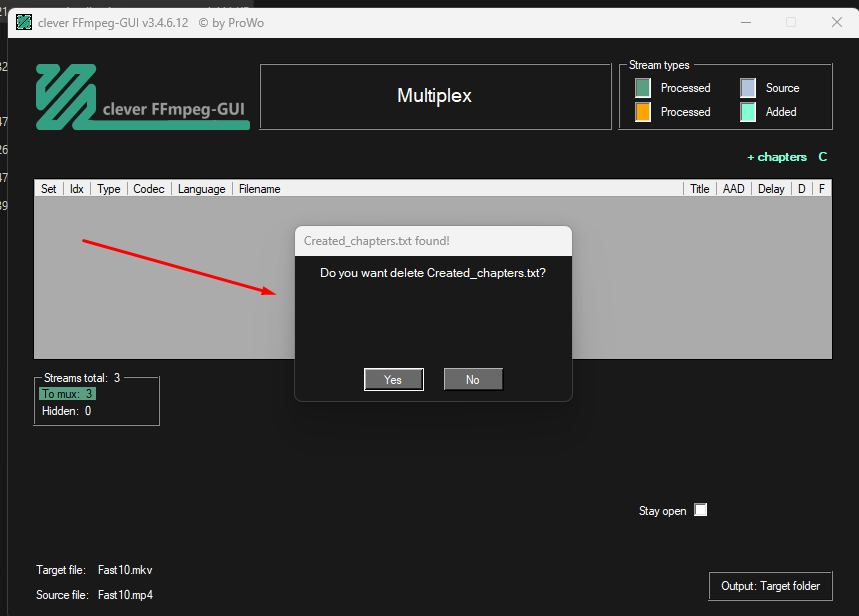 Then click on “Multiplex” and the created chapters will be muxed into the video. -