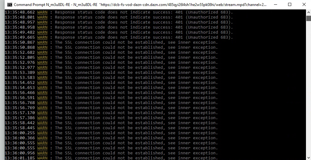 I download content weekly (Using WidevineProxy2 and N_m3u8DL-RE) but yesterday I was unable to getting the following error message..