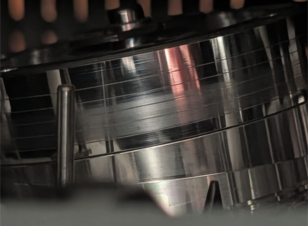 The top section of the drum is basically what the drum surface should look like - polished to a mirror finish as it was from the factory. The scoring/scratching on the lower section is severe. It may have been caused by dust and dirt caught between the tape and spinning drum. VCR's and tapes are designed to work in a very clean environment.