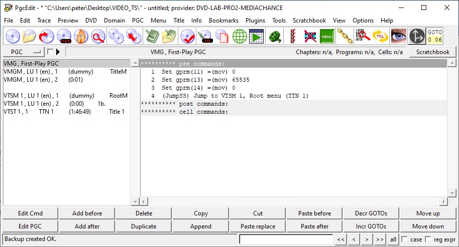 PgcEdit main page after VIDEO_TS folder.