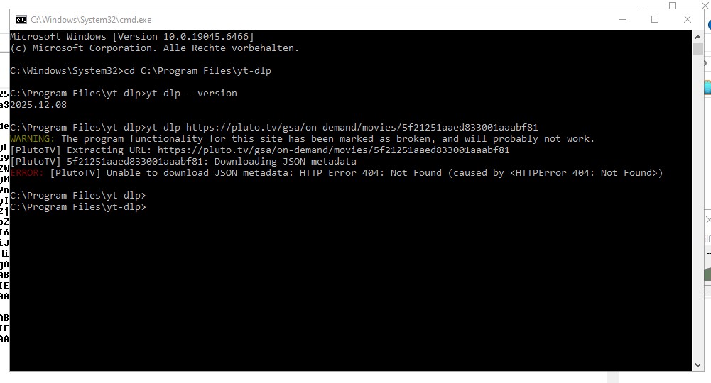 And since you've mentioned yt-dlp...I guess after you've prompted me into that direction, I count myself proud I even just got as far as this now with the help of other people helping me to install and even just do this. I'm stumped. I have no idea what I've even just tried to do with this, or why there's a 404.