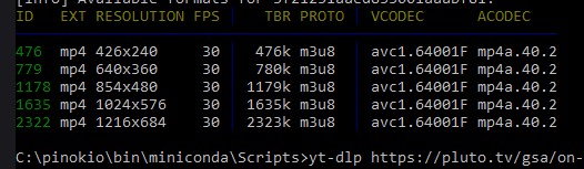 Oh, and on top of that, I've personally had to learn the hard way that it doesn't work with the on-the-fly/cache-only version of yt-dlp (which was the only version I could find online at first), only with the conda-installed version. Next up, one hour to fix the issue that it's playing dumb once you're trying to download "best version" off of PlutoTV ("requested format not available on PlutoTV"), and it only works with -list-formats and then using the specific ID.Last edited by TlatoSMD; 30th Dec 2025 at 20:28.