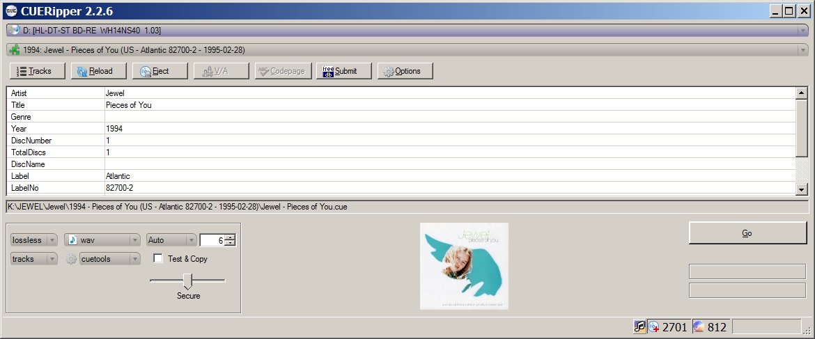 cue: AR: offset 12, rip accurate (23/84), CTDB: verified OK, confidence 295.